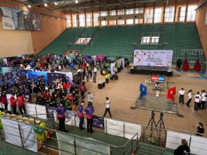 Încă de la deschiderea oficială, atmosfera a fost una competitivă și energică. 31 de echipe din întreaga regiune Est s-au reunit pentru a-și testa limitele, iar fiecare detaliu, de la inspecția tehnică a robotului până la stabilirea strategiilor de alianță, totul a contat. Timpul dintre meciuri a fost petrecut în teren sau la stand, unde am făcut ajustări rapide, am analizat prestațiile anterioare și am căutat constant soluții de îmbunătățire.