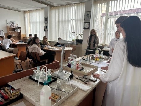 Înainte de oră, am mers la laborator pentru a efectua toate experimentele și pentru a vedea dacă acestea funcționează. Am mai repetat o dată planul de lecție pentru a-l prezenta mai apoi elevilor. Tema aleasă a fost “Experimente cu acizi, baze și săruri folosind mijloace la îndemână”.