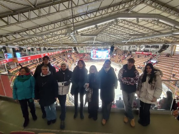 Câteva ore mai târziu, ne-am reîntâlnit în fața terenului de hochei pentru a vedea meciul Timrå versus Rögle. Energia publicului a fost electrizantă, iar meciul ne-a cuprins și am pierdut noțiunea timpului. Fiecare jucător a fost prezentat pe un panou acompaniat de muzică. Ne-am bucurat alături de localnici și am aflat că mulți membri ai echipei sunt foști elevi ai școlii.