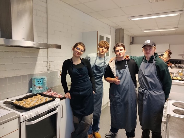 În a patra zi a mobilității, după micul dejun, noi, cei din echipa albastră, am avut ocazia să jucăm un meci de Floorball timp de o oră. Echipa portocalie a participat la o oră de Home economics care a constat în prepararea unor prăjituri de Crăciun, cum ar fi turta dulce sau Roll Cake. Fiind înfometați după activități, ne-am bucurat cu toții de desertul preparat, iar la masa de prânz am avut ocazia să socializăm cu restul copiilor.