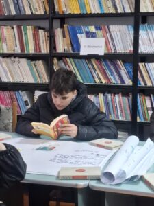 Totodată, biblioteca școlii, prin domnișoara bibliotecară Mirabela Moisă, a găzduit o expoziție de cărți dedicate lui Mihai Eminescu, reunind volume de poezie, ediții critice și studii despre viața și opera sa. Elevii de la clasele a IX-a A, C, E și F au avut astfel ocazia să descopere diversitatea interpretărilor și bogăția perspectivei critice asupra creației eminesciene, într-un spațiu care încurajează lectura și reflecția. De asemenea, a găzduit orele de limba și literatura română pentru clasele a IX-a F, profesor Raluca Dosoftei.