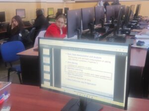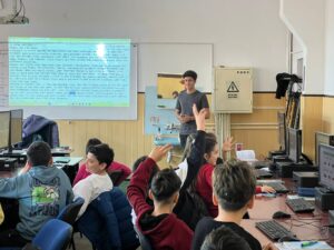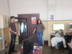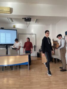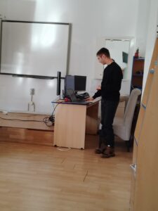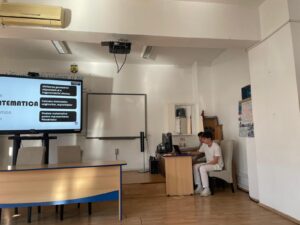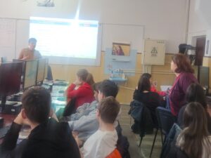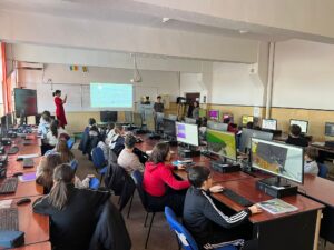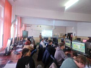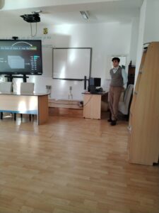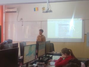 Totodată, Macovei Daniel, elev în clasa a XI-a C, coordonat de prof. Alterescu Iulia-Cristina-Vandana, a prezentat elevilor clasei a IX-a B, sub dirigenția prof. Blaga Gabriela, programa și site-ul Olimpiadei de Inteligență Artificială, vorbind și despre tabăra de pregătire organizată de UBB Cluj-Napoca, la care a participat.